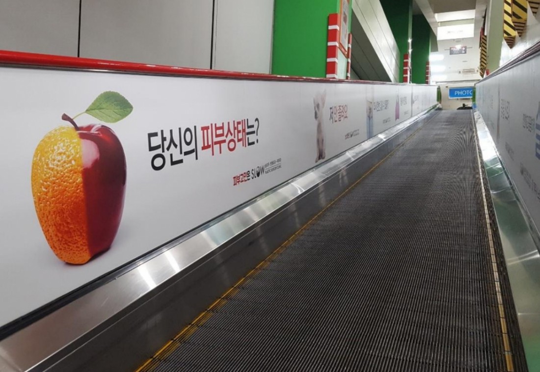 대형마트광고 슬로우성형외과 무빙워크 광고