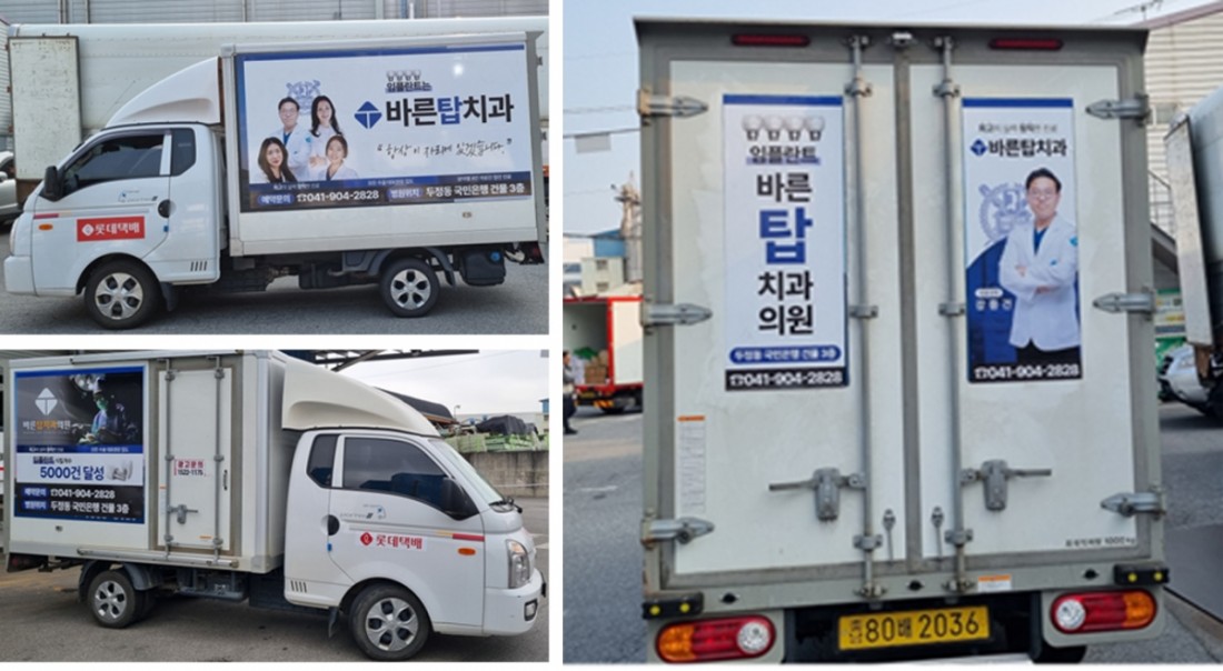 바른탑치과 택배차량광고